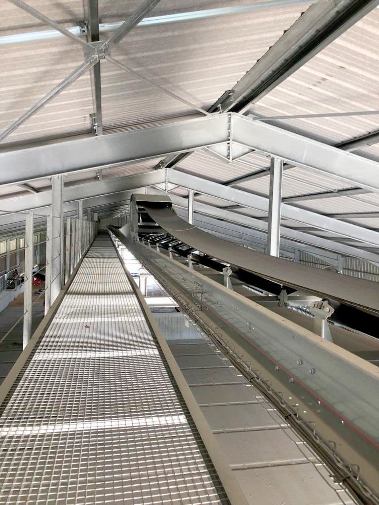 • 1 convoyeur à bande de 74 m avec chariot déverseur électrique autonome